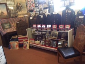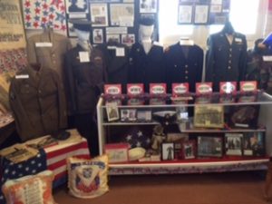 Each November the Historical Society features a display honoring our Veterans. The display showcases uniforms worn by local Veterans from WWII through Afghanistan. Other artifacts, pictures and memorabilia are also on display. The display will be up until the end of Nov. Anyone wishing to donated or loan uniforms or other artifacts please contact us.